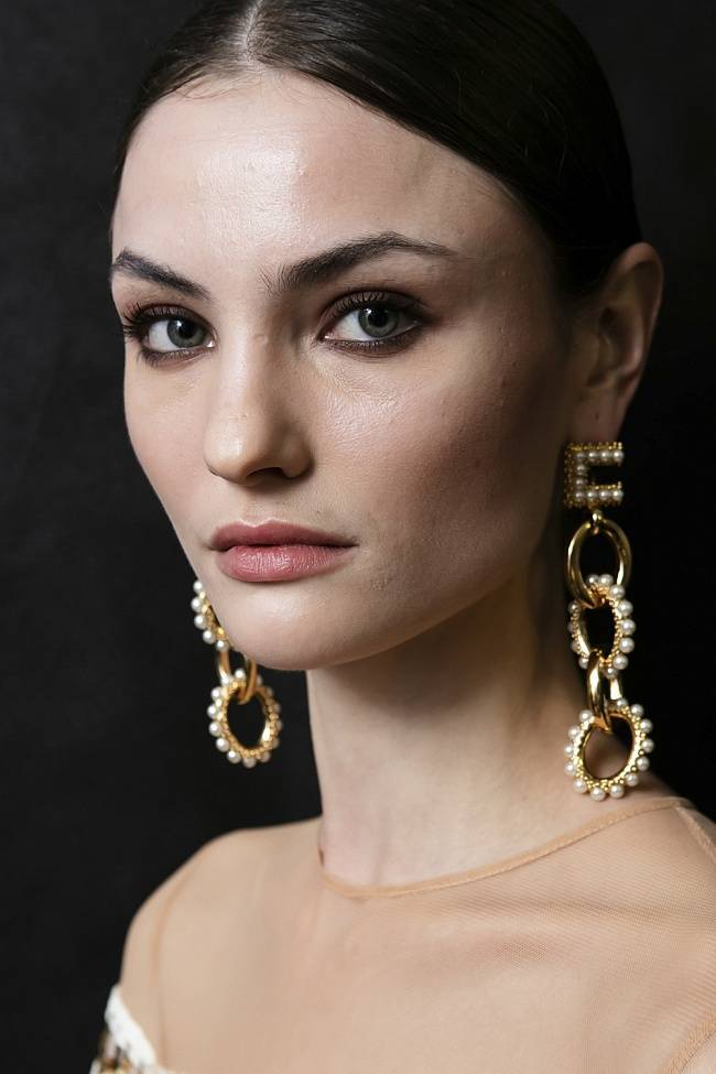 Показ Elisabetta Franchi осень-зима 2021/22Идеальными бровями считают те, что темнее или светлее основной массы волос на один-два тона. Но этим правилом часто пренебрегают, отдавая предпочтение черным графичным бровям (кстати, они тоже канули в Лету) — их особенно любят обесцвеченные блондинки, но подобный контраст ничуть их не украшает. Поэтому старайтесь все-таки следовать этому правилу. А если захочется придать бровям насыщенности, воспользуйтесь техникой мягкого тонирования: просто проработайте брови тенями или карандашом на тон-два темнее основного цвета волос.