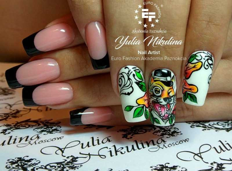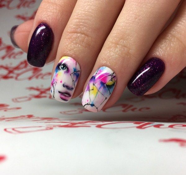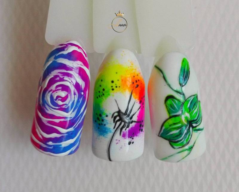 2. Уникальность, неповторимость. Вероятность того, что рисунки акварелью на ногтях повторятся, близка к нулю. Каждая композиция привносит нечто индивидуальное, узоры редко перекликаются между собой. Это гарантирует особе персональный дизайн, которого не будет больше ни у кого.