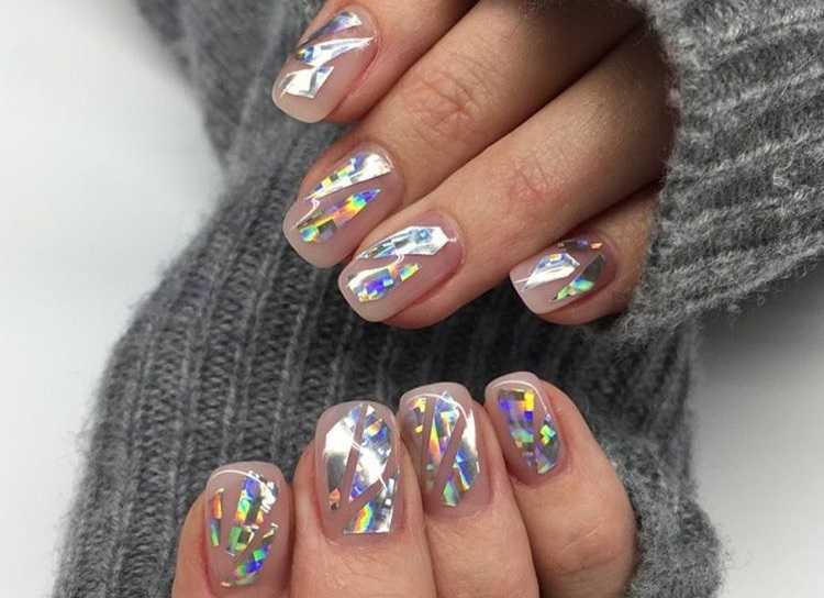 Не уходит пока с моды и дизайн маникюра «битое стекло».
