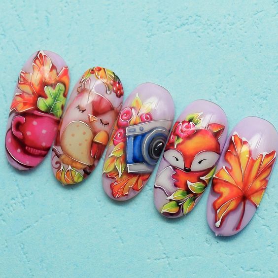 Обычно модницы любят воплощать в своем маникюре тематические пейзажи в соответствии со временем года. Так, летом чудесно смотрятся закаты и пляжные зарисовки на ногтях, а осень – это идеальная пора для изображения колоритного листопада.