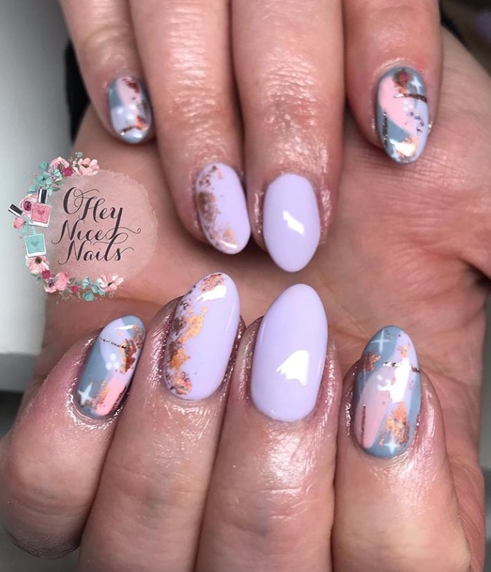 Нежный пастельный лак в качестве основы и немного темнее рисунок в той же цветовой палитре — идеальное решение для красивого и стильного маникюра.