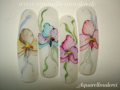 Профессионализм мастера играет ключевую роль в маникюре акварелью, это почти художественная, ювелирная работа, а также чувство стиля и колористики. Для работы в маникюре используются настоящие акварельные краски, которые от обычных отличаются составом, позволяя создавать нежные, нейтральные и очень красивые рисунки. Рисунки могут быть самыми разнообразными, но чаще всего это цветочные мотивы, птицы, бабочки и элементы абстракции.