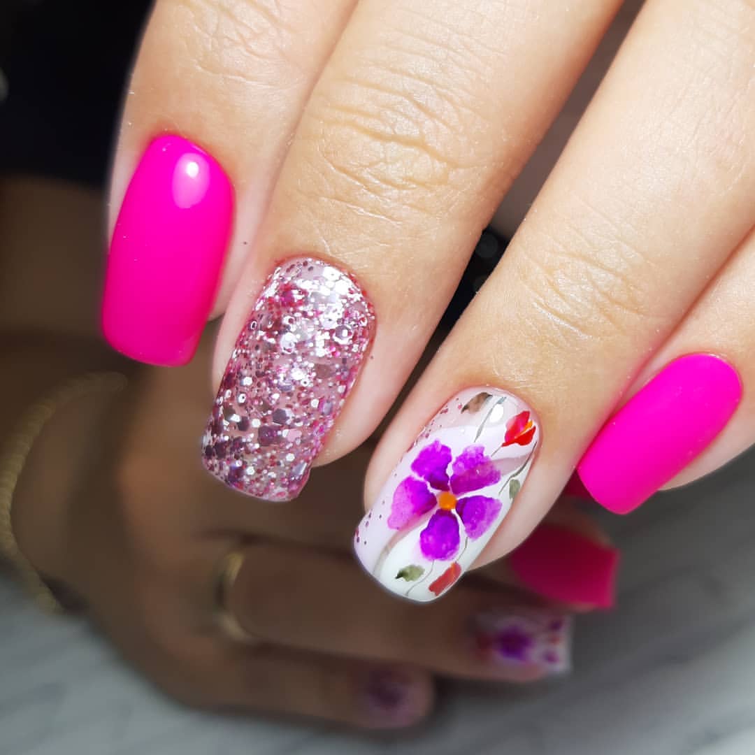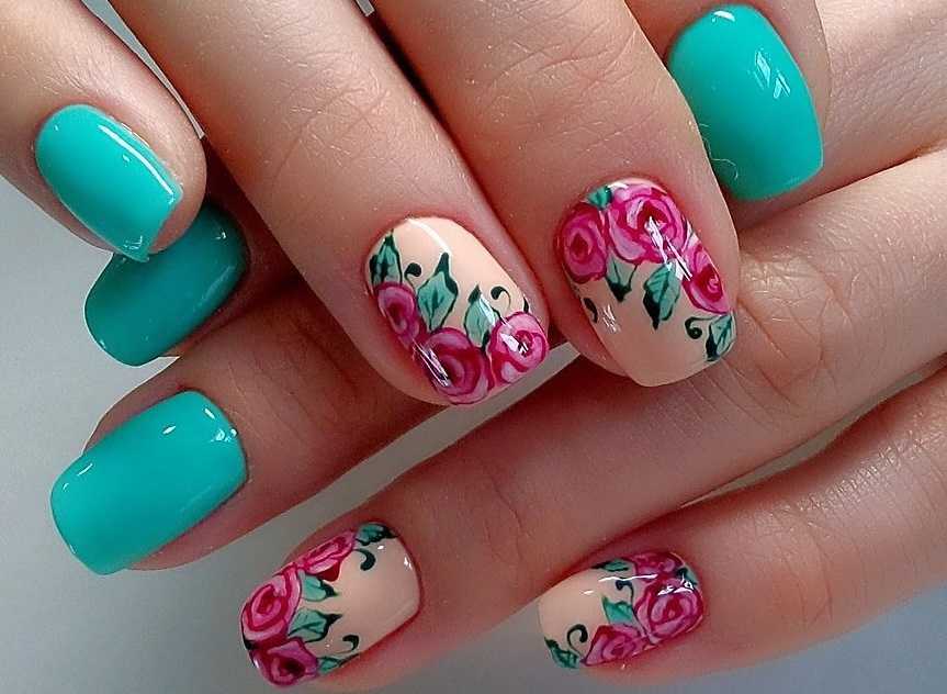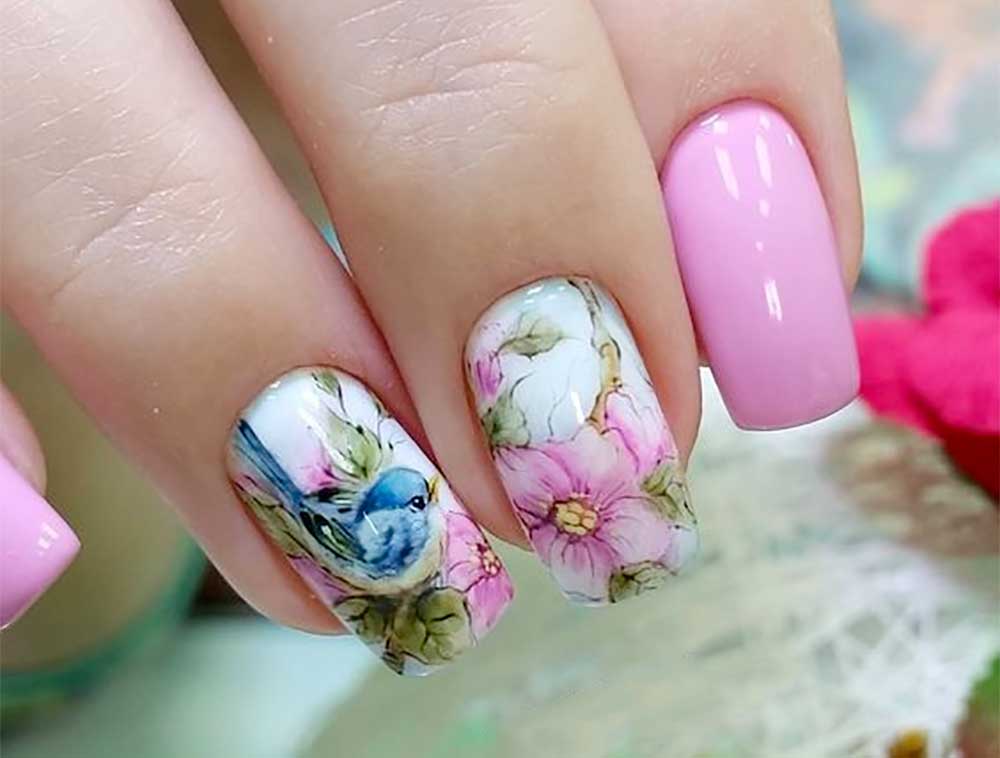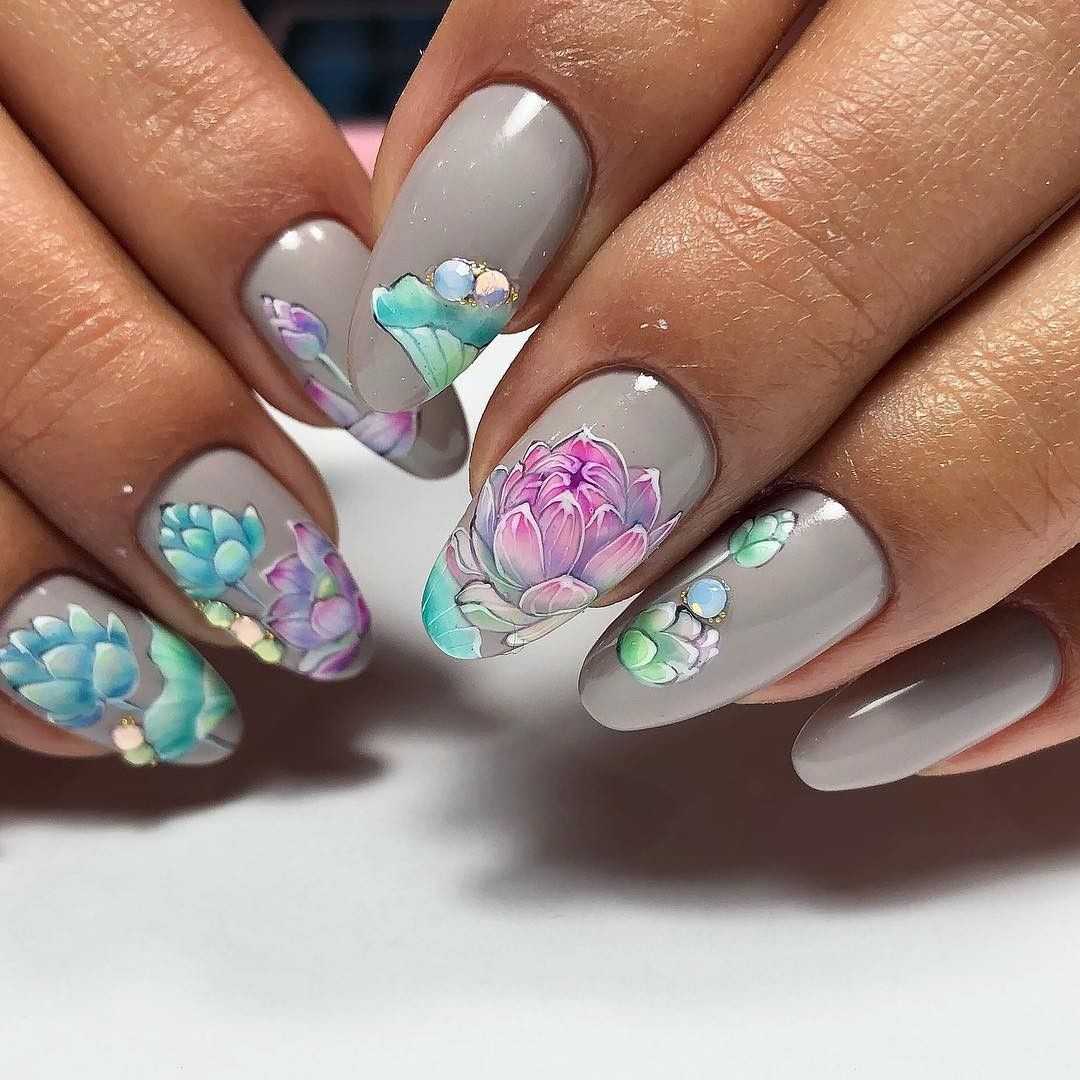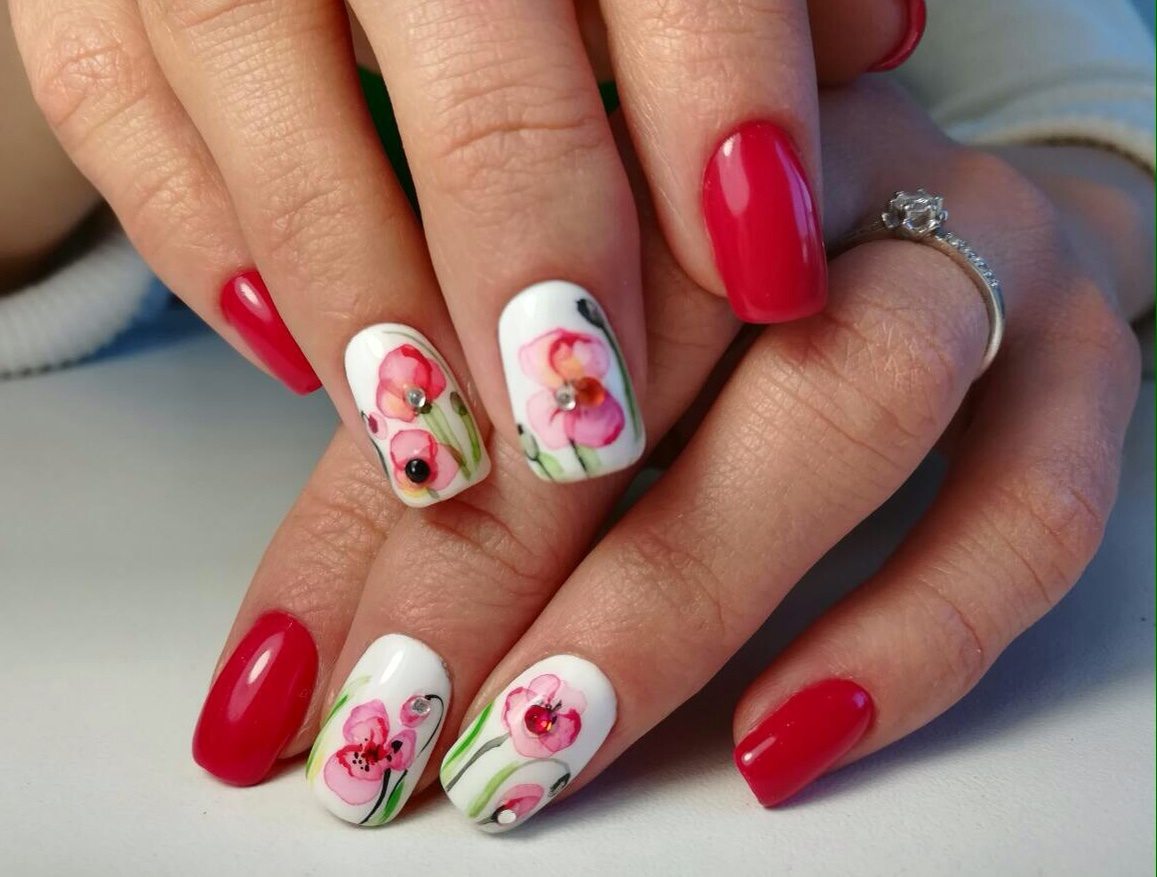 На протяжении многих лет цветочный принт является едва ли не самым популярным видом дизайна ногтей. Он используется в качестве французского декора, однотонного покрытия и многих других вариантов дизайна. Поэтому неудивительно, что цветы все чаще используются в технике акварели. Это позволяет смешивать оттенки в правильных пропорциях для получения нужных тонов. Примечательно, что эта техника не требует нанесения нескольких слоев краски. Самое главное – применять их аккуратно, без перерывов.