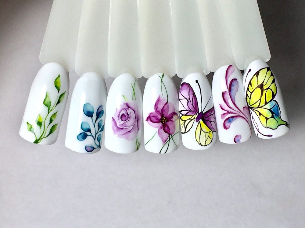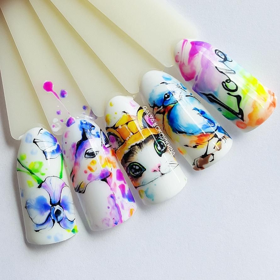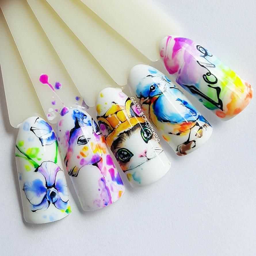 А также эксплуатировать с осторожностью, чтобы не допустить расползания или загустения. Палитра для нанесения акварельных красок на ногти не отличается многообразием. Это может сподвигнуть на эксперименты со смешиванием, комбинированием цветов