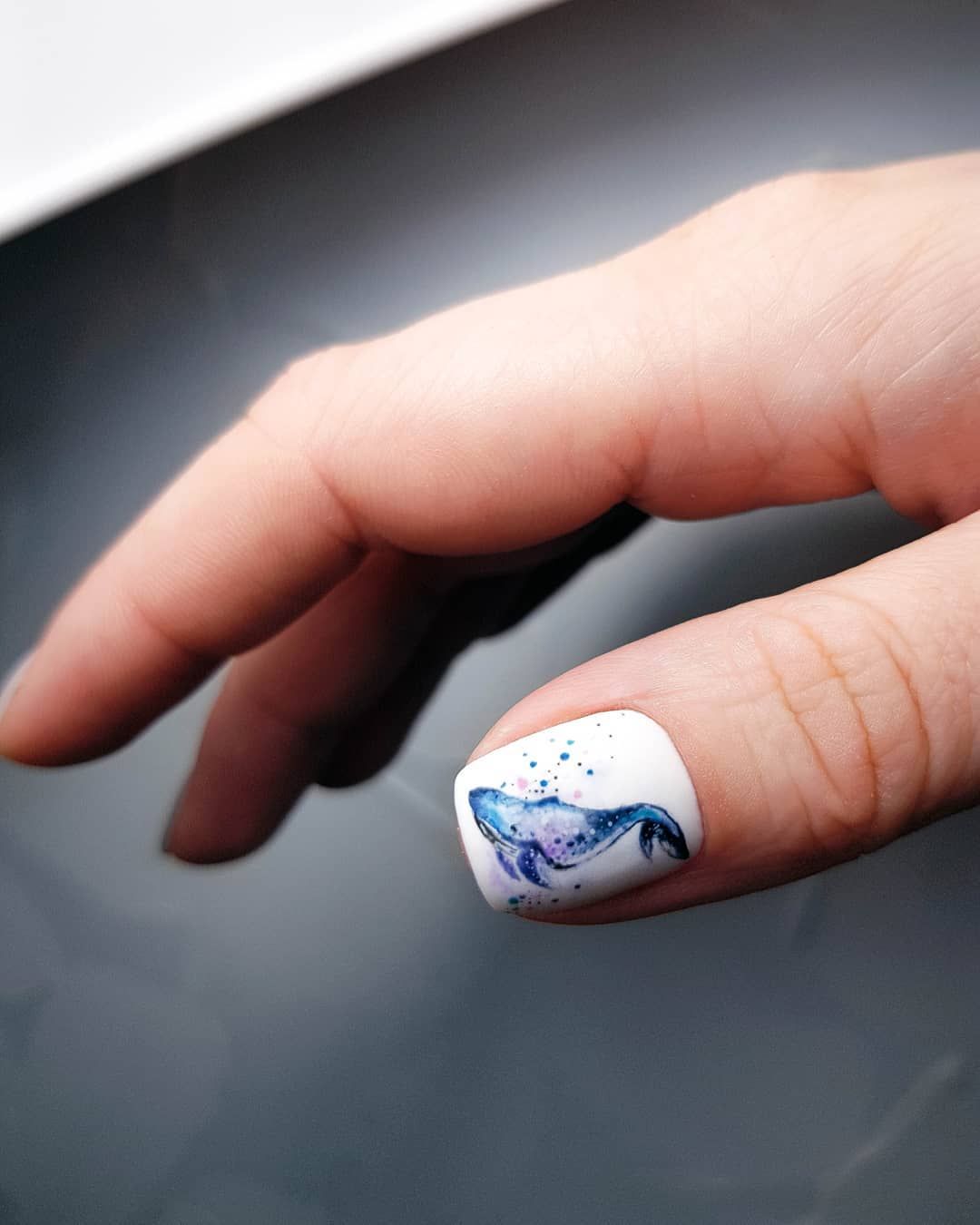 4. Требование к длине непринципиальны: рисование акварелью добротно смотрится и на длинных, и на коротких ногтях. Вопреки распространенному мнению, короткие ногти тоже могут предоставить достаточно пространства для творчества.