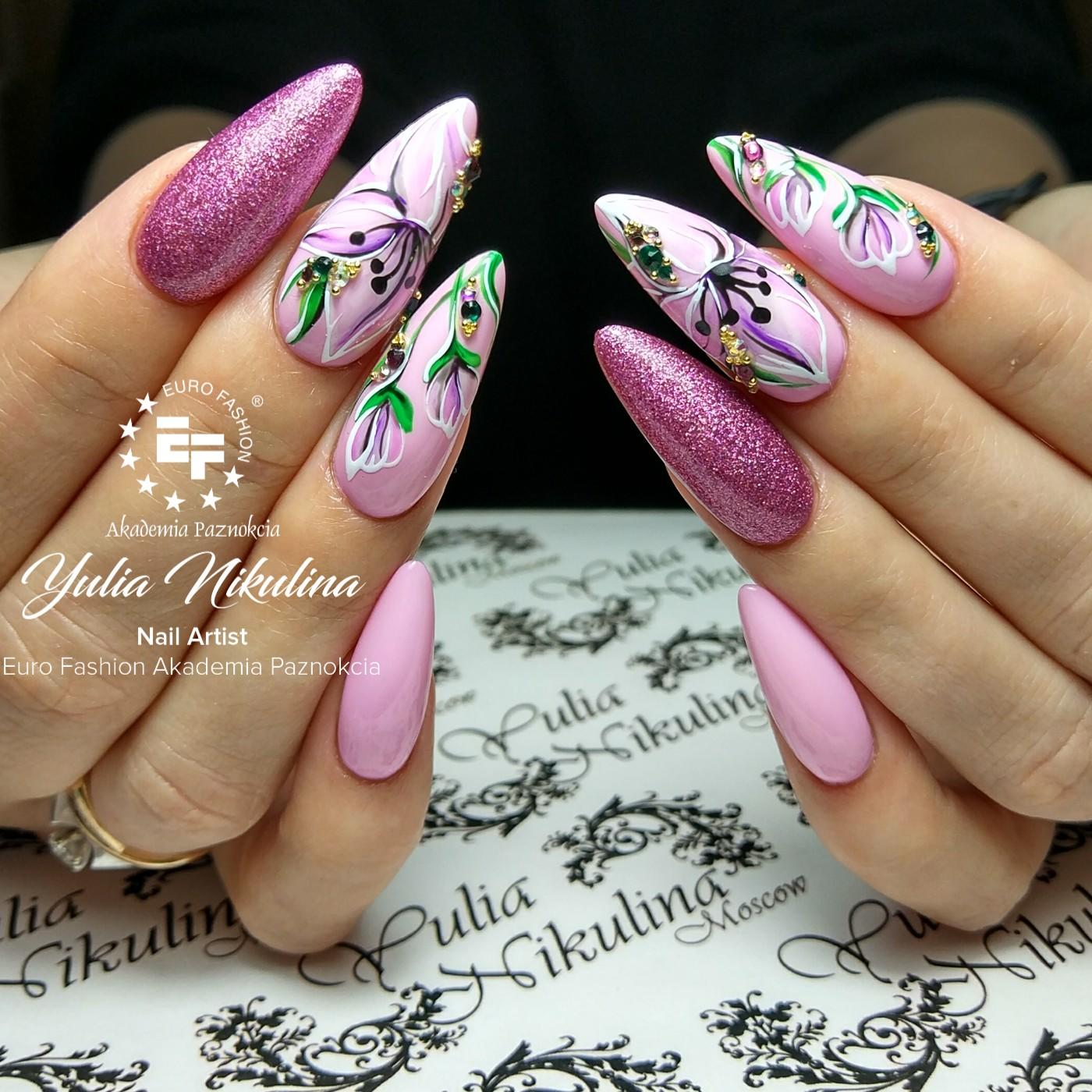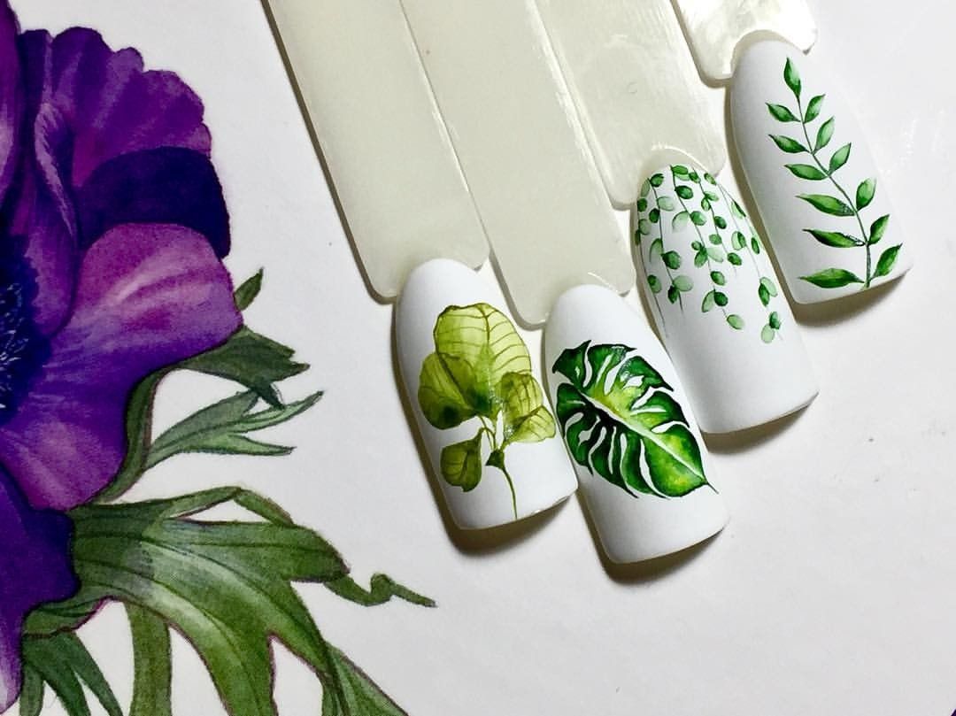 2. Уникальность, неповторимость. Вероятность того, что рисунки акварелью на ногтях повторятся, близка к нулю. Каждая композиция привносит нечто индивидуальное, узоры редко перекликаются между собой. Это гарантирует особе персональный дизайн, которого не будет больше ни у кого.