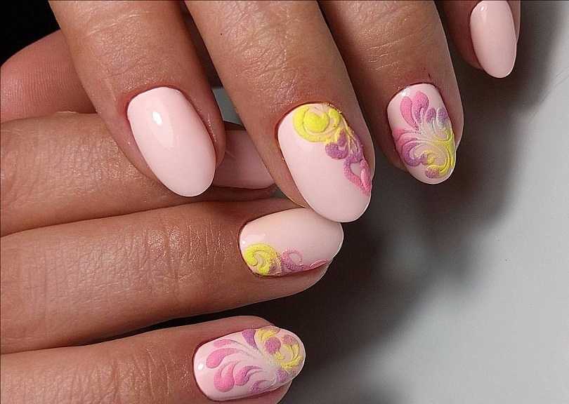 Нежный пастельный лак в качестве основы и немного темнее рисунок в той же цветовой палитре — идеальное решение для красивого и стильного маникюра.