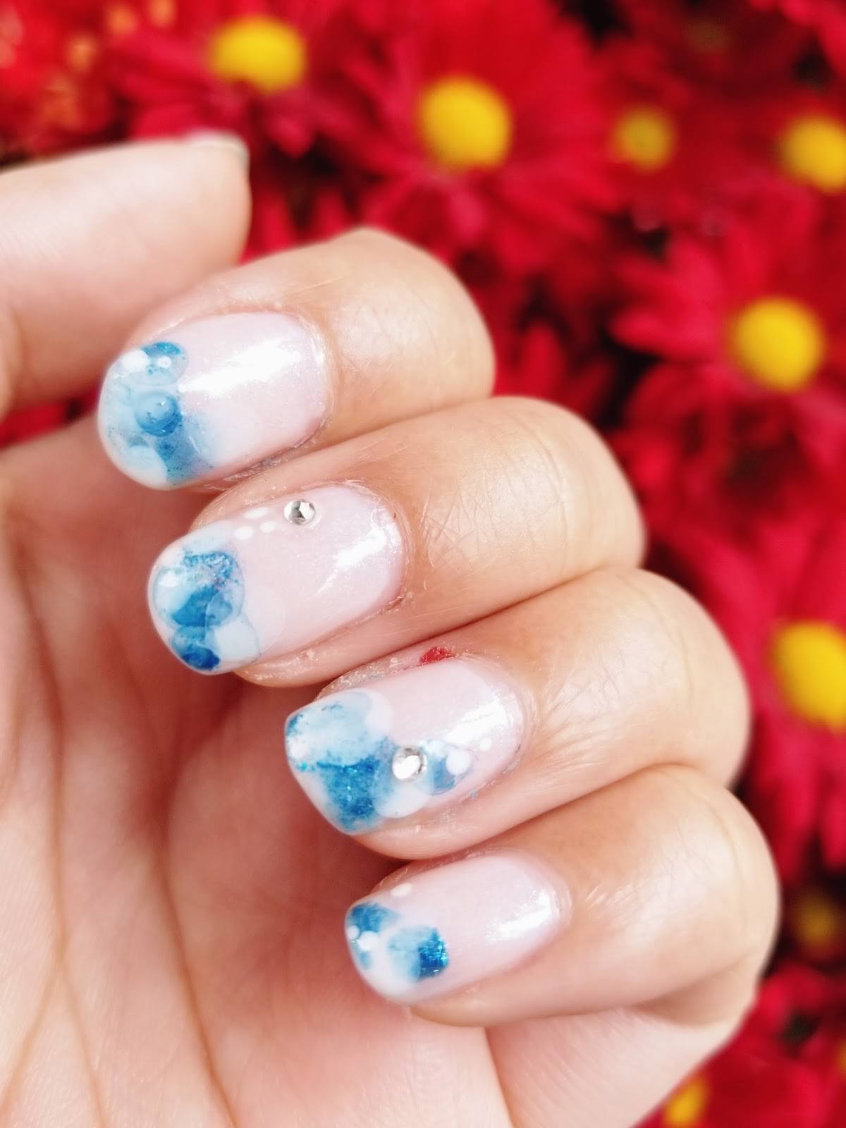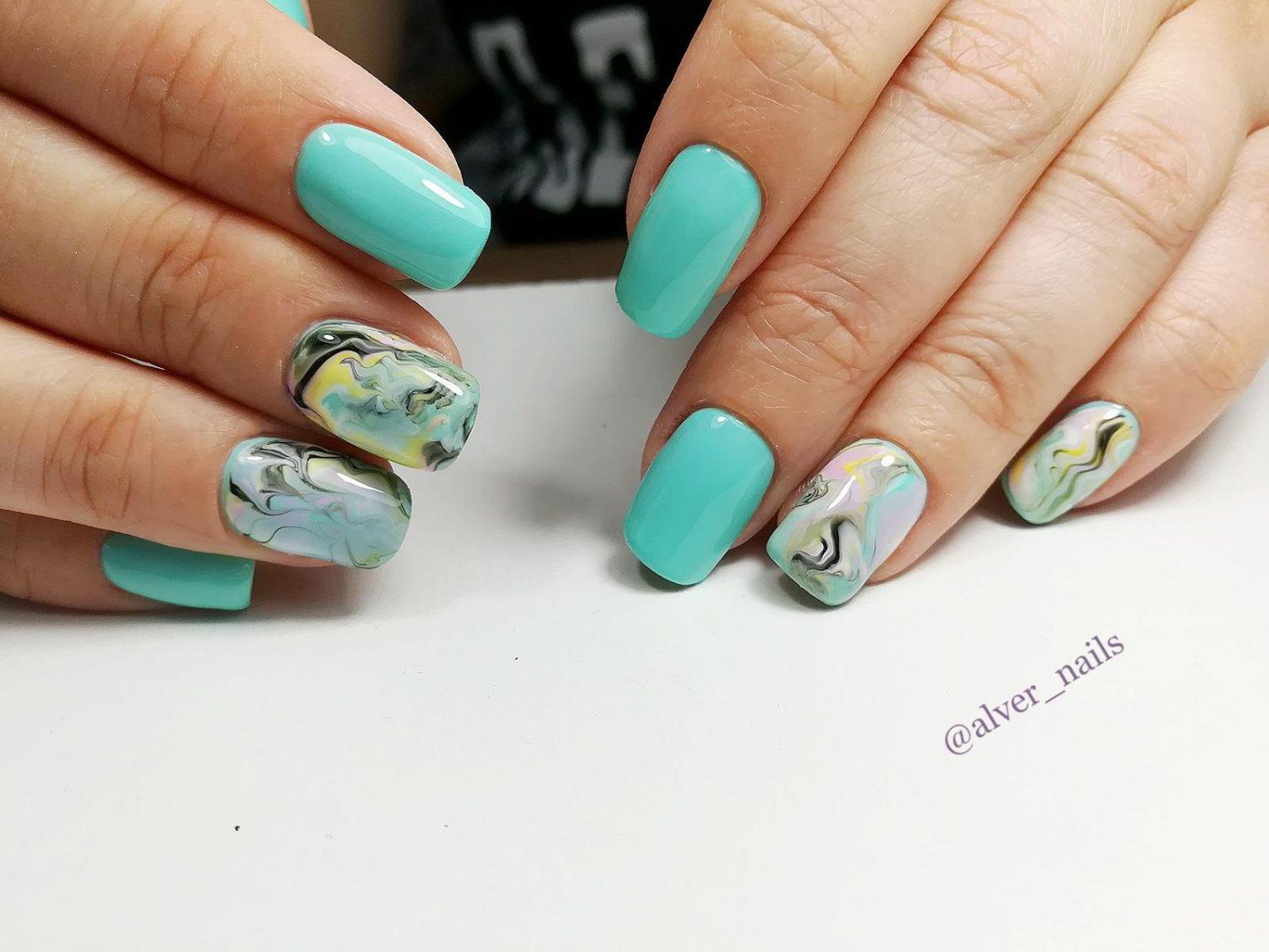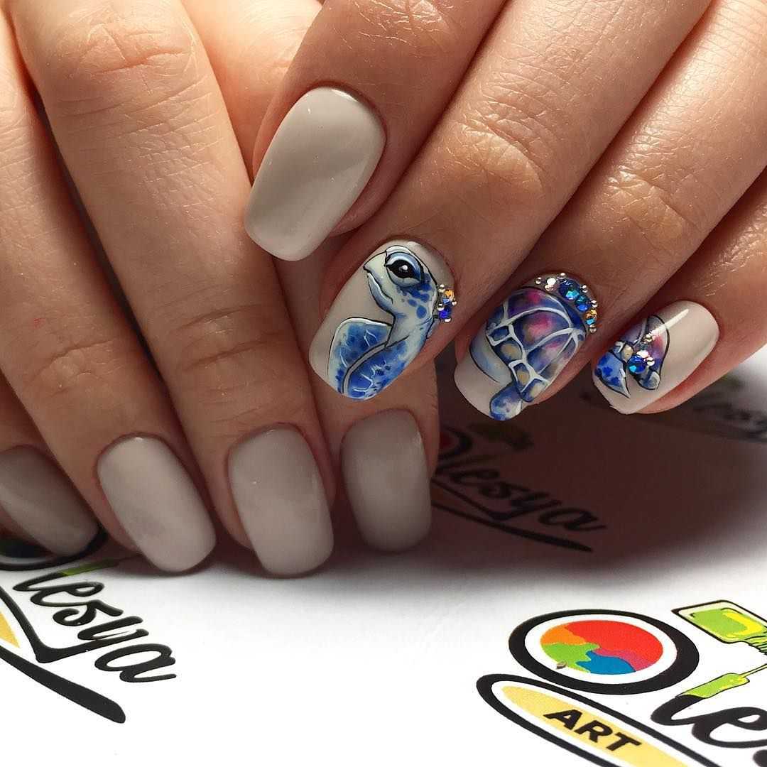Для того что б сделать аквариумный маникюр на ногтях нужно помнить, что не стоит выбирать слишком объемные дизайны и крашения.