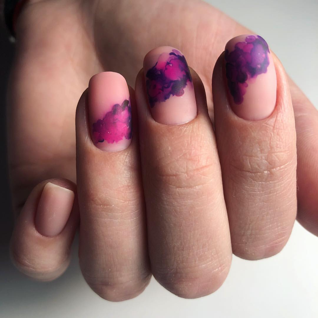 1. Бесподобный визуальный эффект. Дымчатое растекание, размытые контуры придают виду ногтей чувственности, нежности и романтичности. Не всякий метод нэйл-арта способен побороть акварель в выразительности, изысканности исполнения.