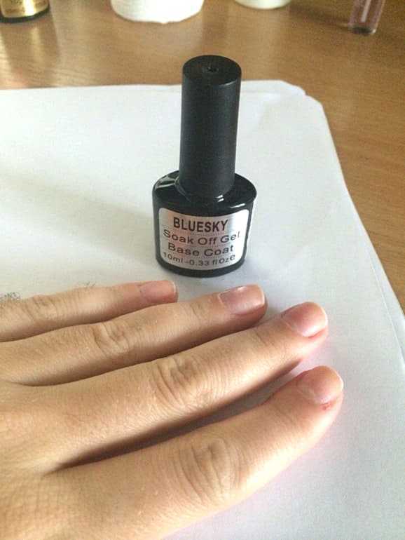После протирки берем базовое покрытие и наносим его на ноготки тонким слоем.