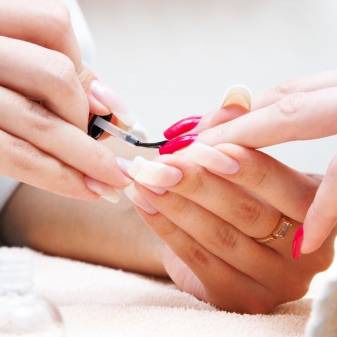 В том случае, если маникюр выполнялся в салоне, можно приобрести лак, максимально подходящий по оттенку к гель-лаку, который начал скалываться с ногтей. Также как и в первом случае, необходимо острые края скола обработать пилочкой. Затем нанести подобранный лак в два слоя на образовавшуюся пустоту, дождаться его полного высыхания, а сверху нанести еще один слой прозрачного лака или закрепителя для него.