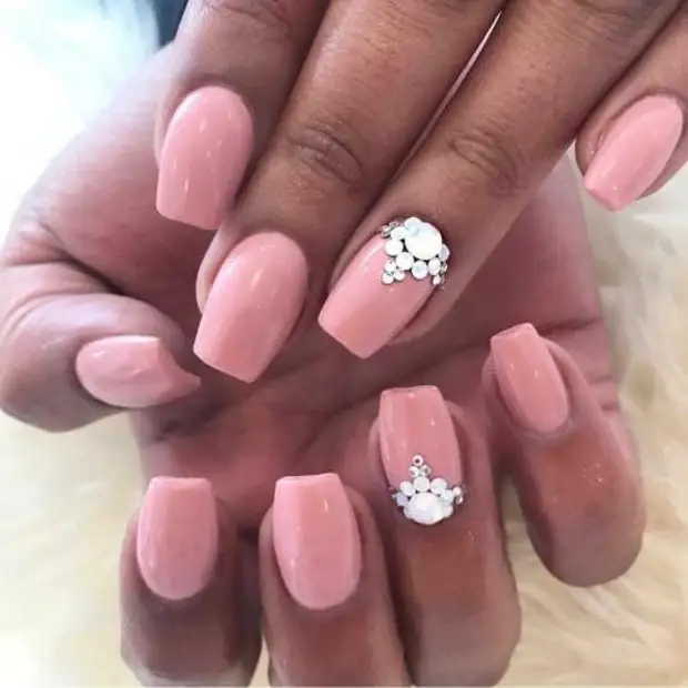 - Дополнительное декорирование ногтевого покрытия. Сюда можно отнести использование наклеек, страз и блесток как в те места, где появился дефект, так и на некоторые другие ноготки для того, чтобы создать видимость такого маникюра.
