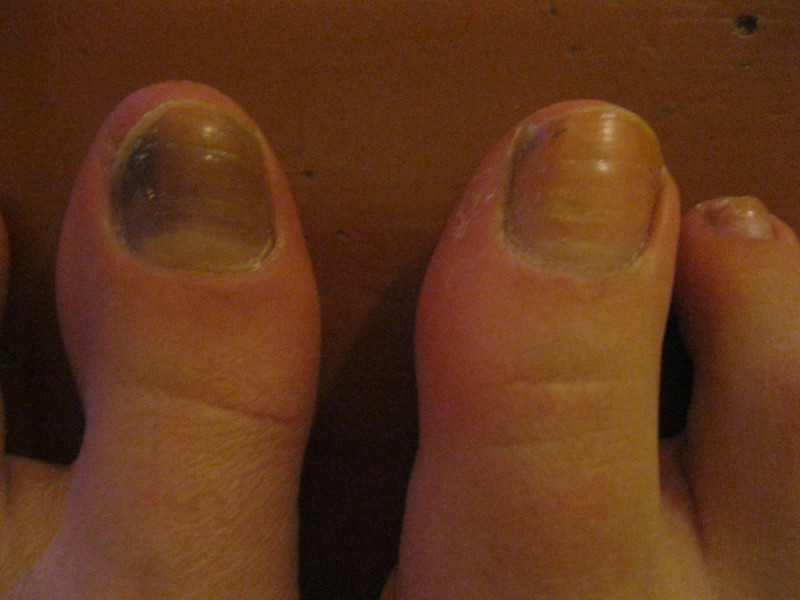 Причина, почему посинели ногти на больших пальцах ног или на руках может быть и гораздо менее опасной. В частности посинения могут объясняться механическими травмами. Так, если Вы сильно удалились пальцем, прищемили его и т.п., то через пару часов на ногте может сформироваться темно – синее, фиолетовое или чёрное пятно.