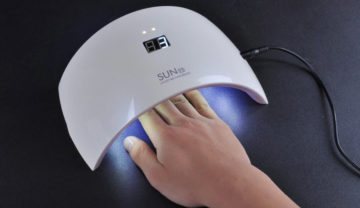 , лампа в которой полимеризуется материал. Лампы нужно менять каждые погода. Обязательно соблюдать время выдержки ногтя с гелем в лампе. Не просушенный гель так же даст скол или отслойку.