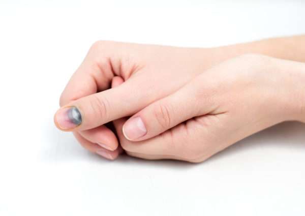 Если имеют место механические повреждения (ушибы, ущемление, удары), после них, как правило, на ногтевых пластинах образуются гематомы (синяки багрово-синюшного или черного цвета). Они со временем рассасываются и светлеют. Когда отрастает новый ноготь, описываемые симптомы полностью исчезают. На ногах ногти часто слоятся по причине ношения узких носочков или тесной обуви, сильно сдавливающей пальчики и мягкие пластины.