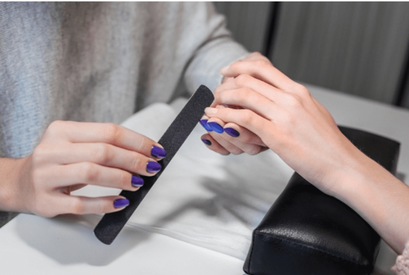 Пилочка для ногтей с высокой и мелкой зернистостью. Обычно в инструменте используются полосы разной абразивности с обеих сторон. Это очень удобно. С помощью баффа тщательно отшлифуйте ногтевую пластину, расплющите ноготь, если есть неровности, и убедитесь в хорошем сцеплении с базовым покрытием — первым гель-лаком.