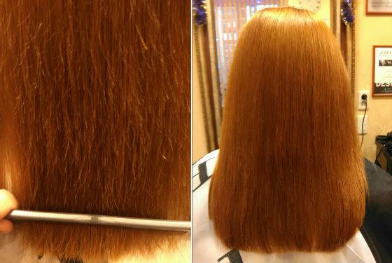 Многие девушки, сделавшие полировку волос утверждают, что эффект от нее намного лучше, чем при стрижке горячими ножницами. Учитывая одинаковую цену, во время полировки не меняется длина прядей, что для многих является самым важным плюсом.