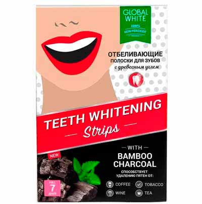 Продолжает рейтинг самое бюджетное средство из сегодняшней подборки Global White Древесный уголь. Это достаточно распространенный товар на полках косметических магазинов, поэтому его можно легко найти в оффлайн-продаже. 14 полосок рассчитаны ровно на неделю применения, а при необходимости можно купить еще одну упаковку и продлить курс на 14 дней, в таком случае эффект будет более выраженным.