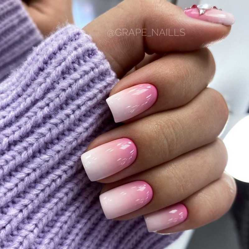 Омбре не обязательно присутствует на всех ноготках. Интересно смотрятся градиентные полосы на безымянном пальце и мизинчике.