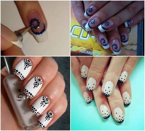 Самый простой вариант рисунков на ногтях дотсом – это комбинации точек.