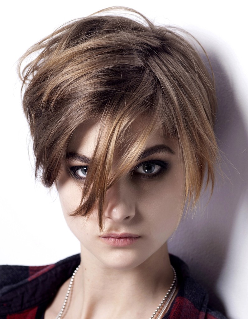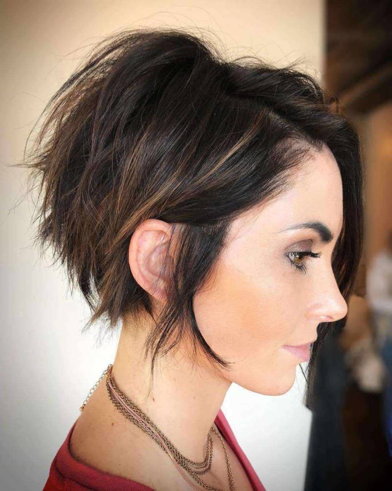 При выборе короткой прически следует делать косую челку или добавлять асимметрию. Она может быть в проборе, челке или по всей длине.
