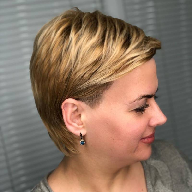 Эта мальчишеская короткая стрижка освежает и омолаживает образ, делает его воздушным. Она подходит активным целеустремленным женщинам, проста в уходе. Укладка не занимает много времени.