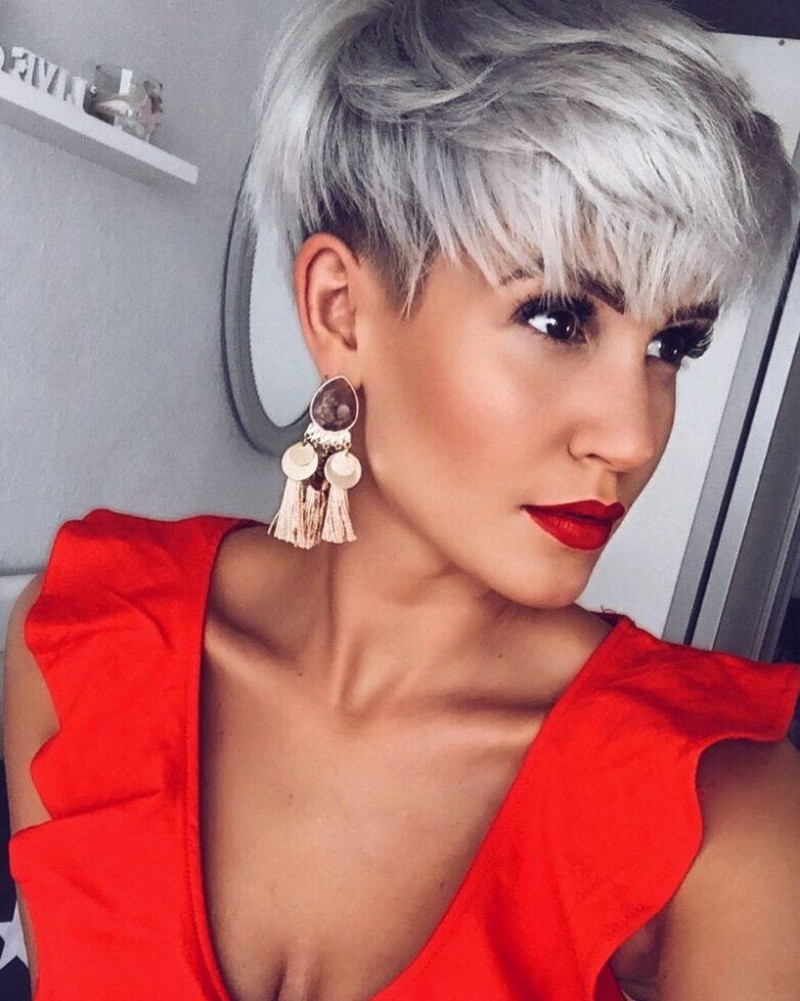 Выбор смелых задорных женщин, желающих «скинуть» с помощью прически не пару лет, а гораздо больше. Пикси подойдет обладательницам густых волос и приближенной к идеальной формы лица. Свободный взъерошенный вид подарит легкость и непревзойденный шик, такая стрижка способна изменить внутренний настрой женщины.