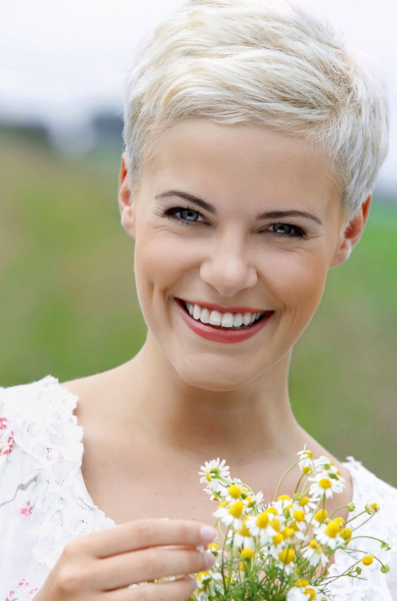 Стрижка под мальчика является замечательным вариантом для красивых и стройных женщин. Такая модель хорошо подходит активным дамам, имеющим отличную кожу и выразительные черты лица.