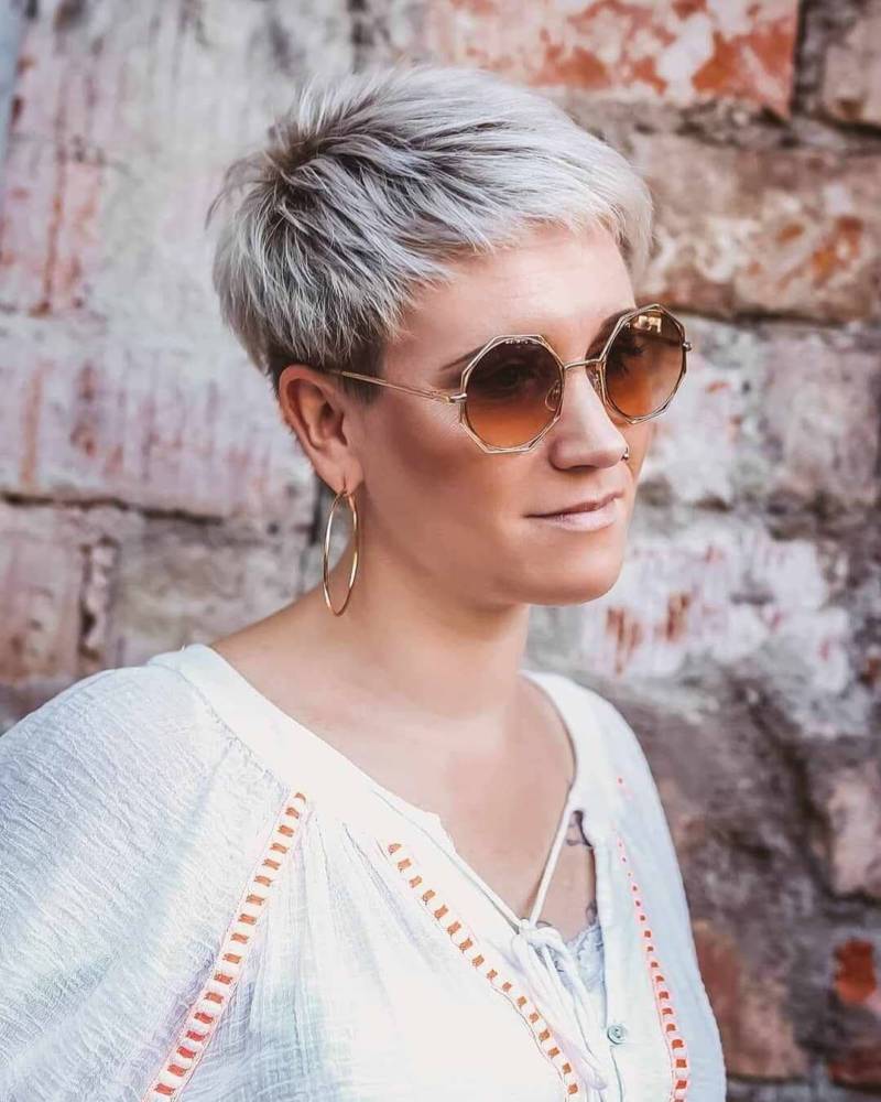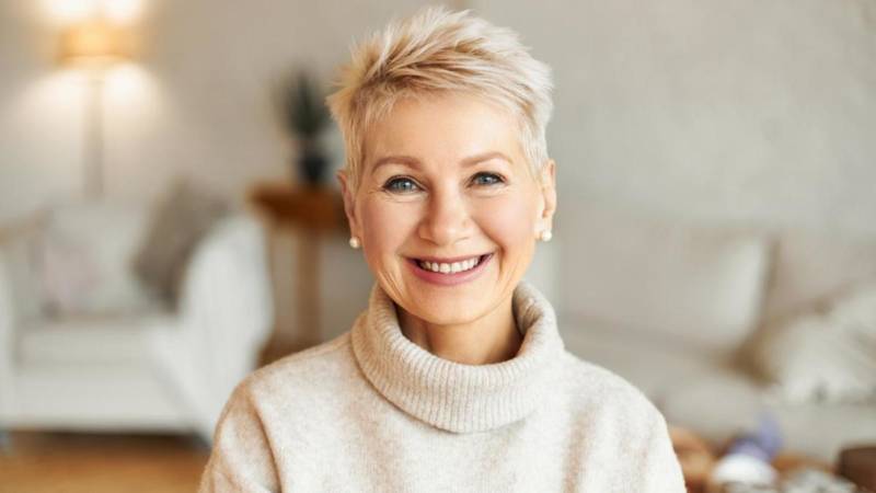 Брутальные стрижки, считающиеся мужскими (например, ежик) интересно смотрятся на зрелых обладательницах овального лица.