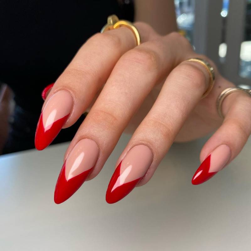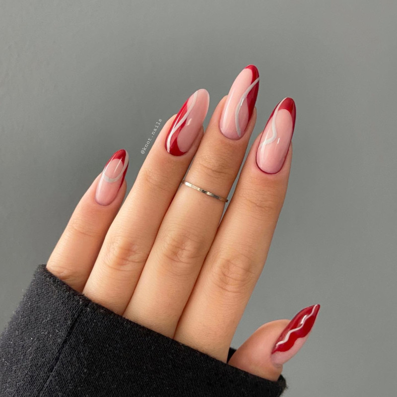 Соединим классику с классикой? В нашем случае получится настоящая бомба, а именно трендовый маникюр в красных тонах 2024. Причем в особенностях дизайна можно себя абсолютно не ограничивать, придумывая все новые и новые варианты комбинации этих стилей. Например, сделать красную основу и белую полосу. Или наоборот — красную “улыбку” на стандартной полупрозрачной базе. А может, у тебя получится придумать что-то уникальное?