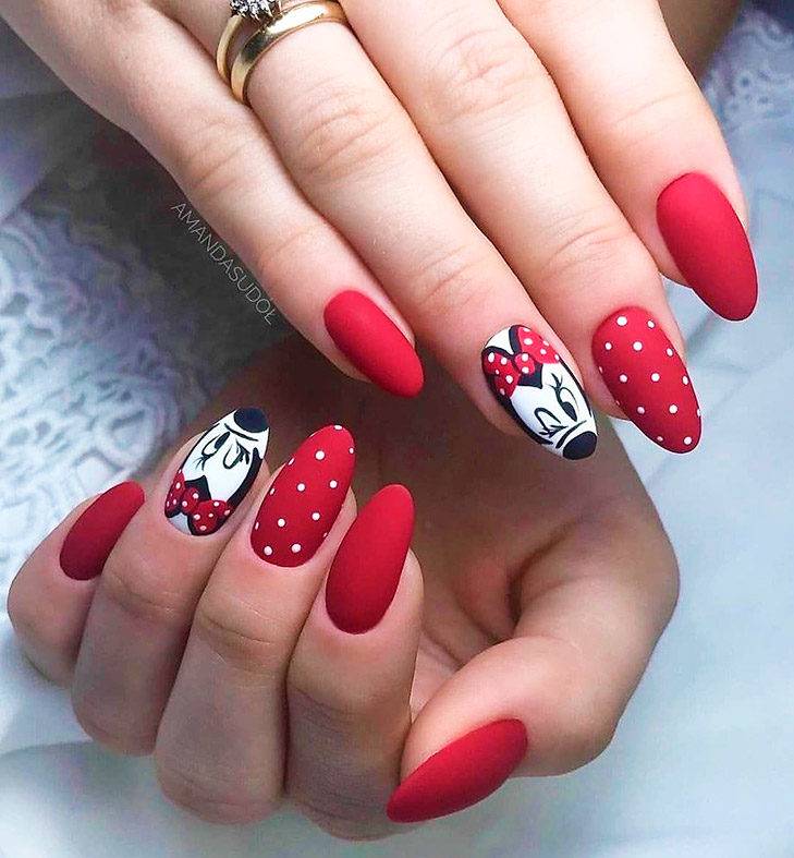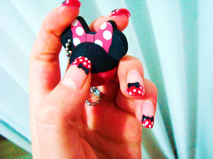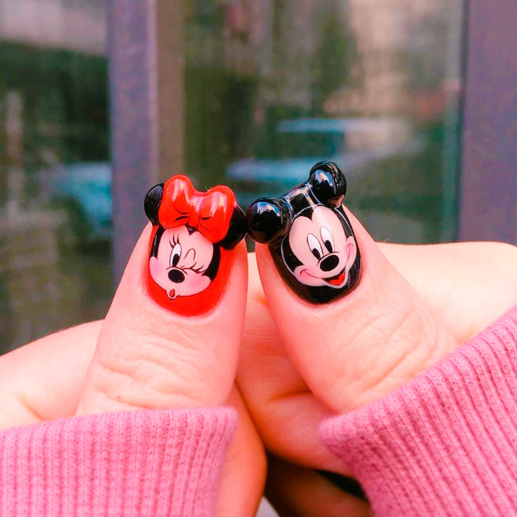 Детский, милый и смешной Микки неожиданно перекочевал на ноготки светских красавиц и выглядит там очень естественно. Такой дизайн смотрится дорогим, если выполнен мастером, рисующим вручную.