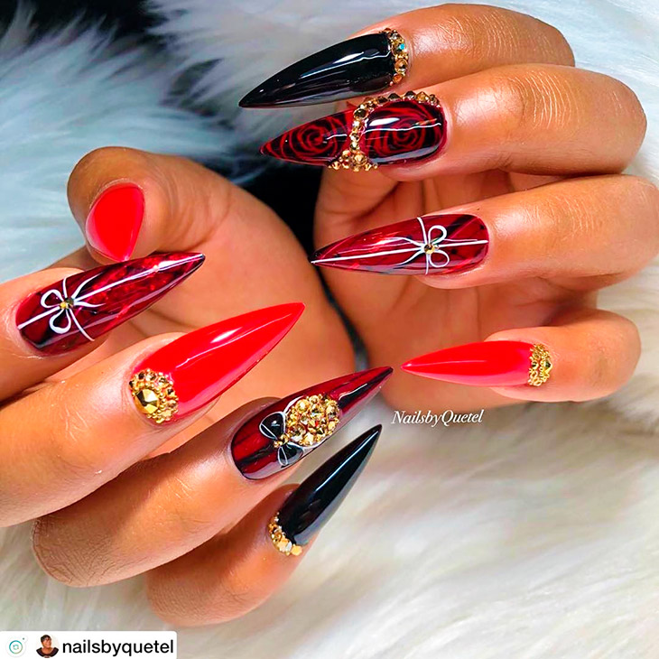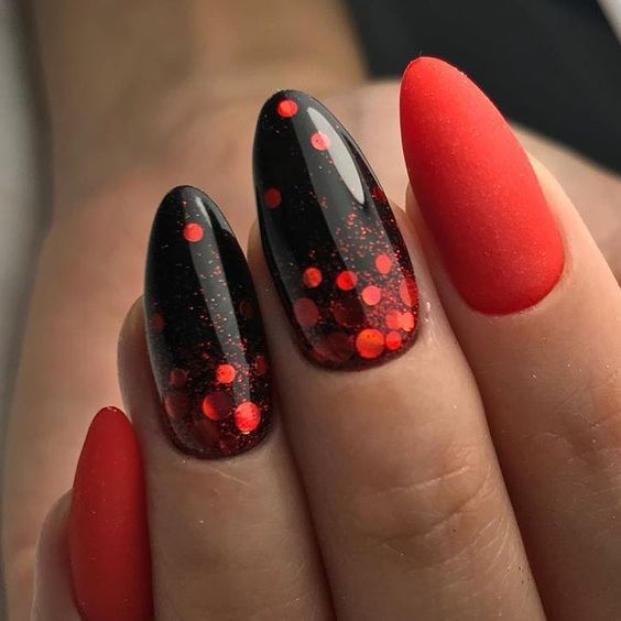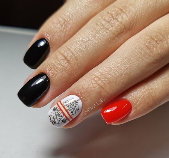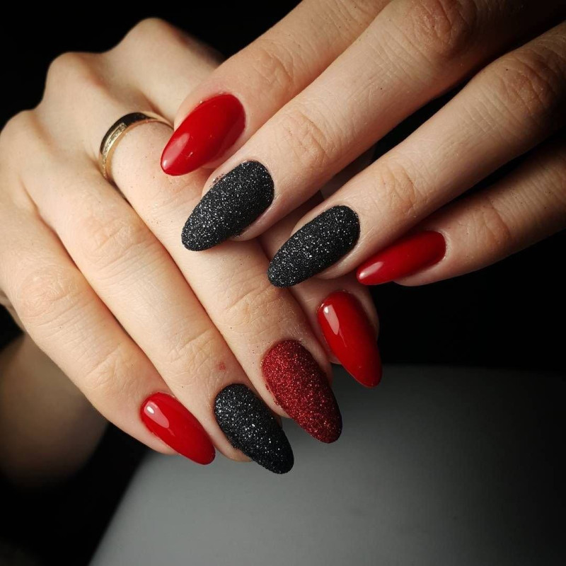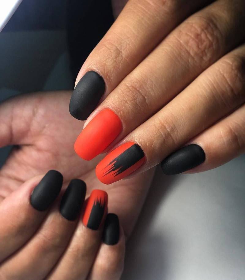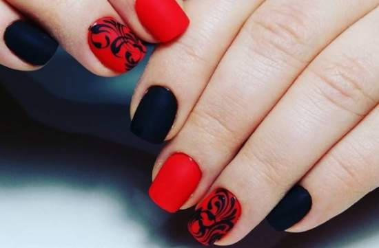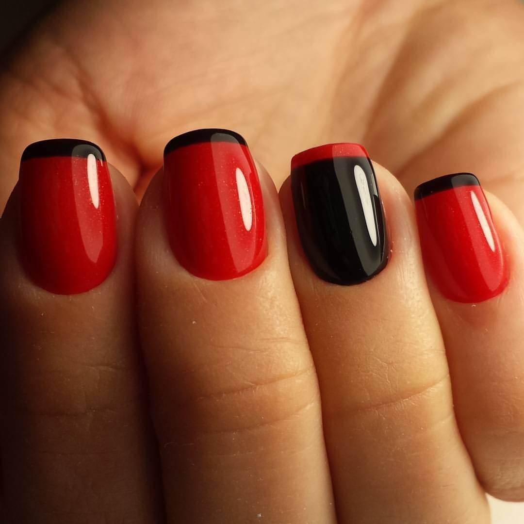 Сочетание красного и черного в маникюре