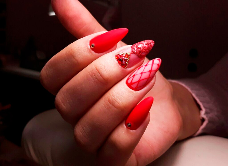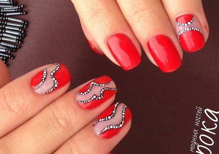 Красный маникюр с аксессуарами — новинки дизайн