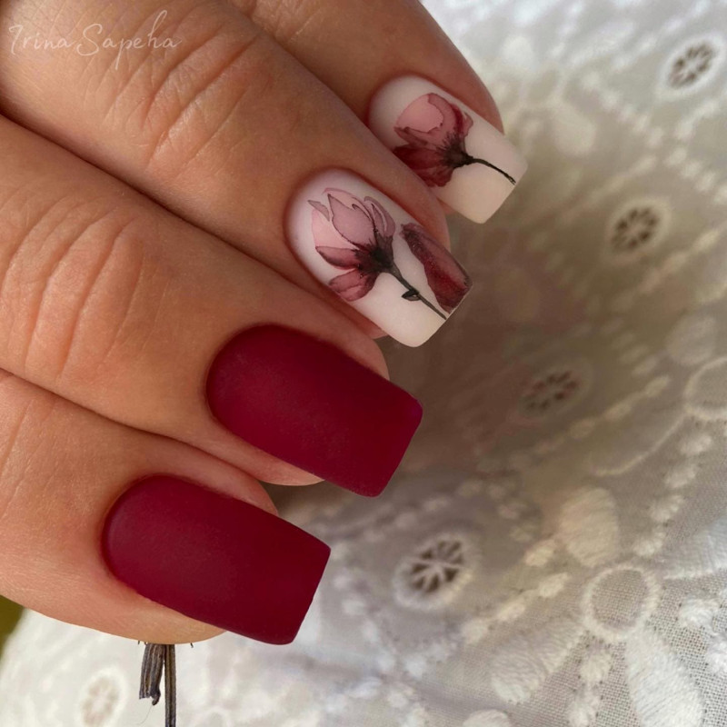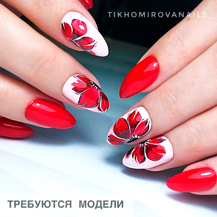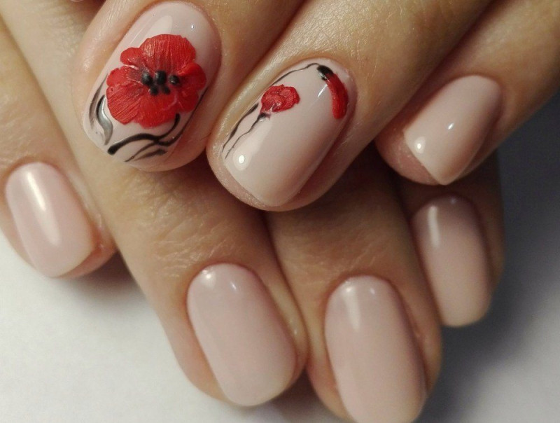 Цветы на красном маникюре смотрятся достаточно необычно. И это неудивительно, ведь красный маникюр – один из самых ярких и запоминающихся. Но, несмотря на свою яркую красоту, такой маникюр требует аккуратности и тщательности в выполнении.