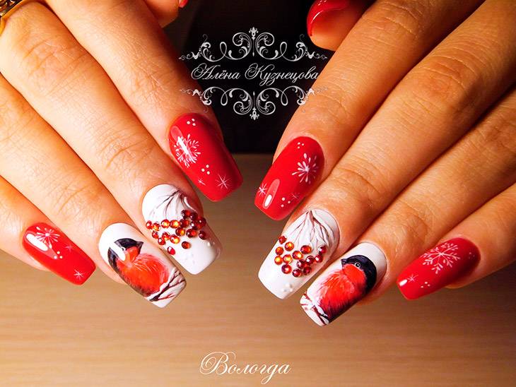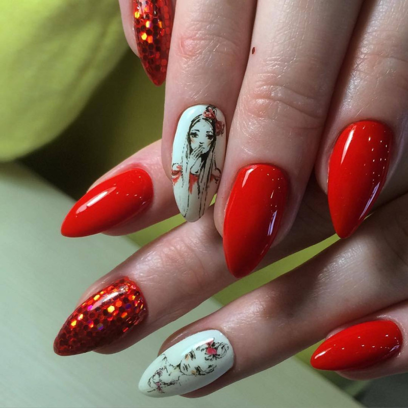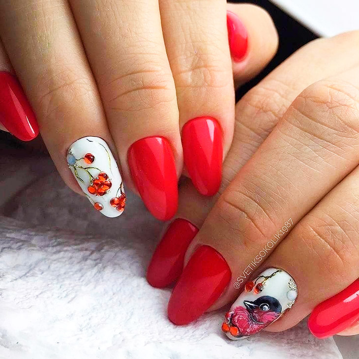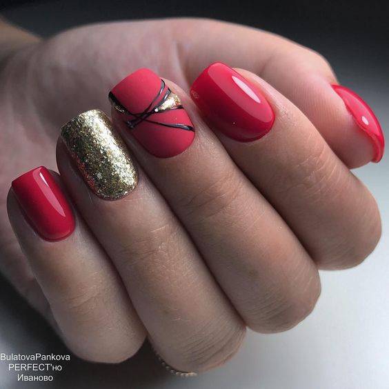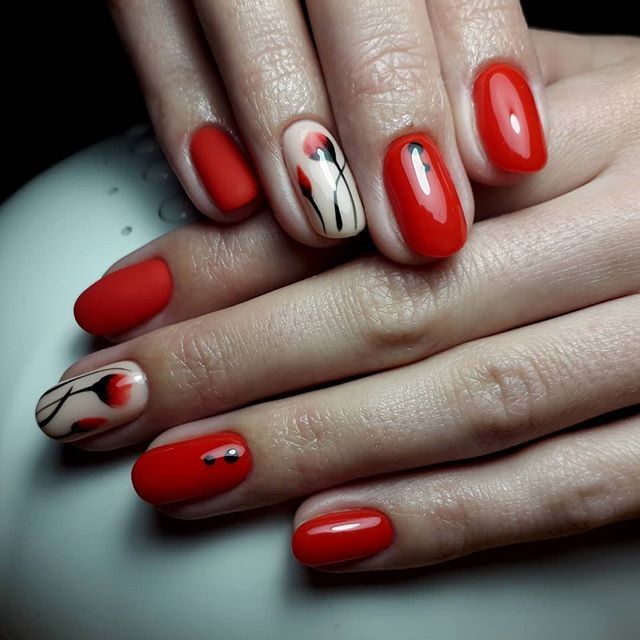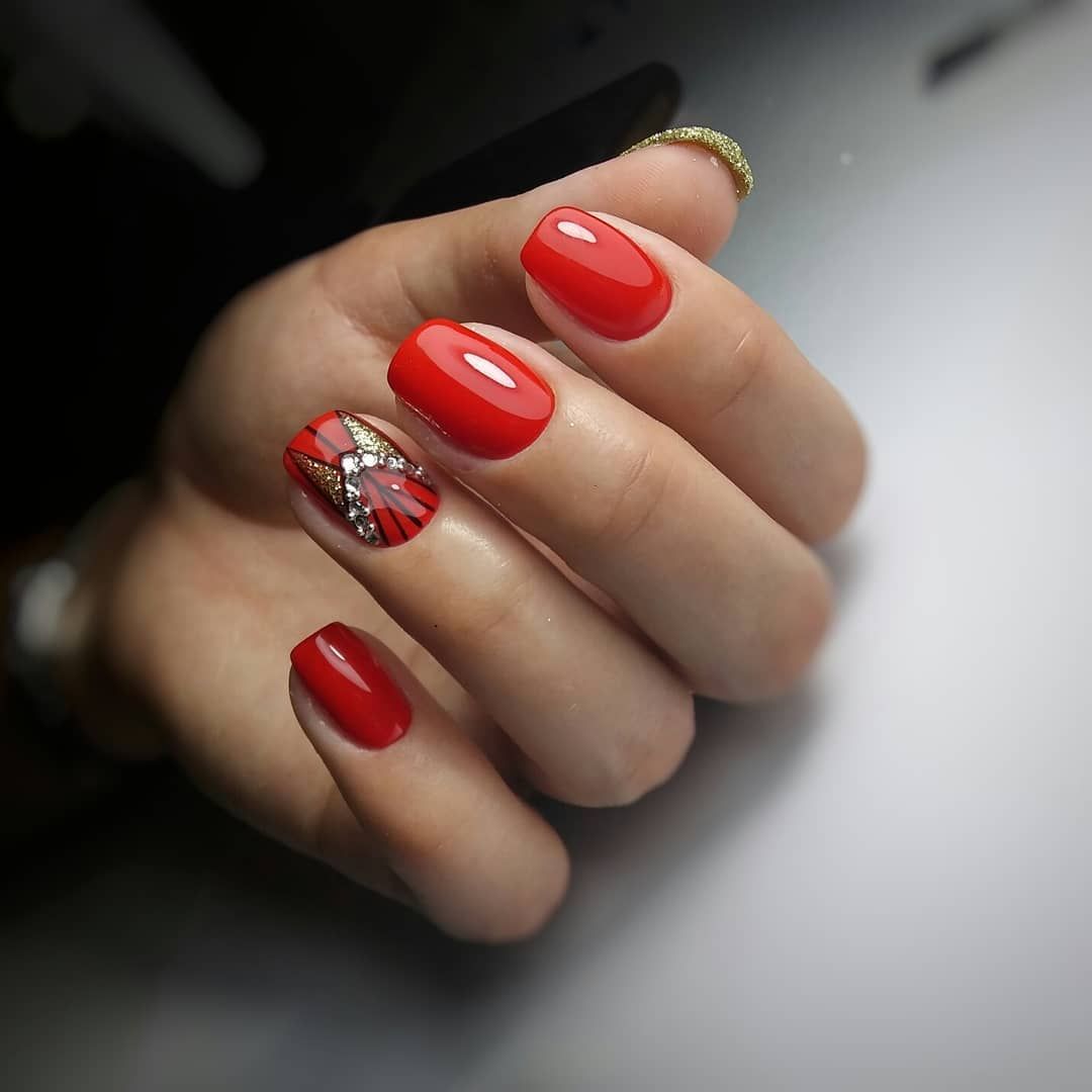 Красный маникюр с дизайном