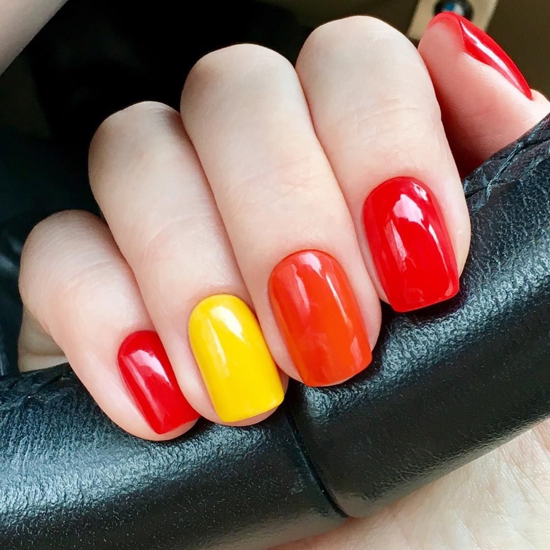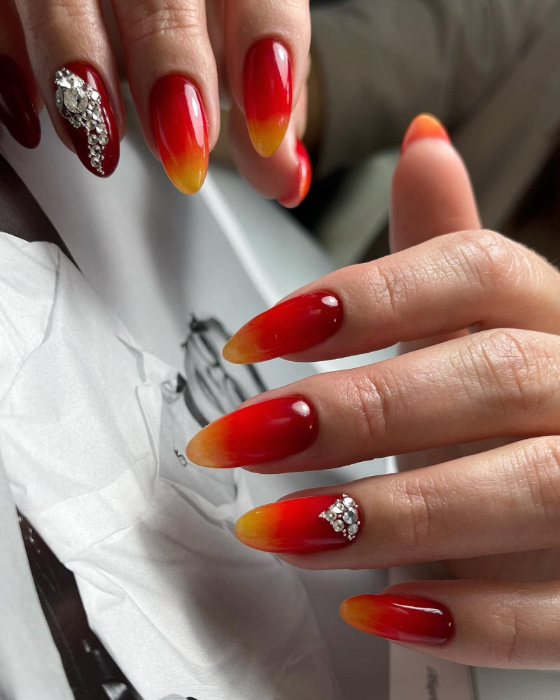 Омбре с участием красного цвета — очень свежий и необычный тренд, который можно обыграть различными способами. Итоговый стиль такого маникюра будет зависеть от выбранных цветов, поэтому комбинаций здесь может быть масса. Сделав плавный переход из бело-розового в красный, ты получишь максимально сдержанный и элегантный нейл-арт с ноткой оригинальности. Желто-красный градиент — готовый номинант премии “Летний маникюр 2024”. А красно-черное омбре дополнит дерзкий образ.