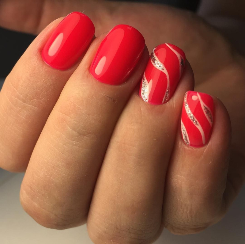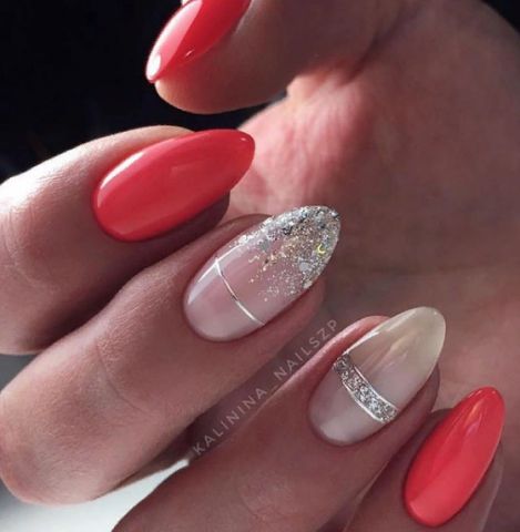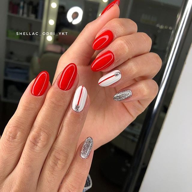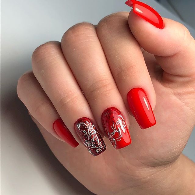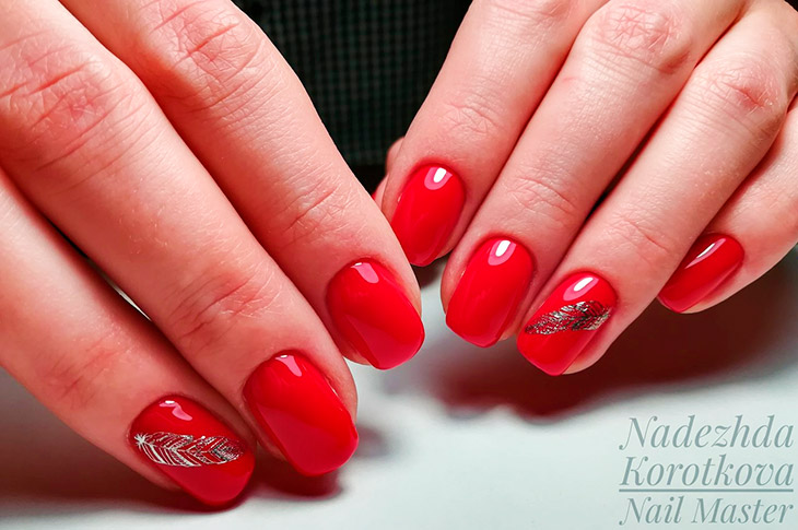 Красный маникюр с серебром
