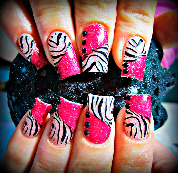 Еще один анималистический вариант дизайна – прорисовка линий, напоминающих окрас зебры или наклейка в черно-белых тонах, придадут красному большей игривости и намек на флирт.