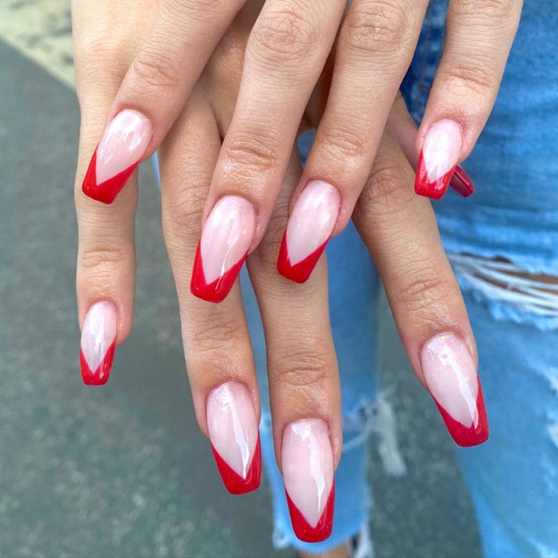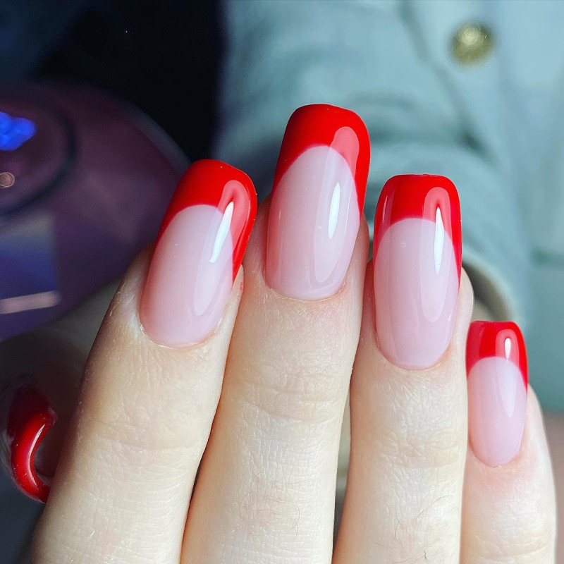Красный французский маникюр