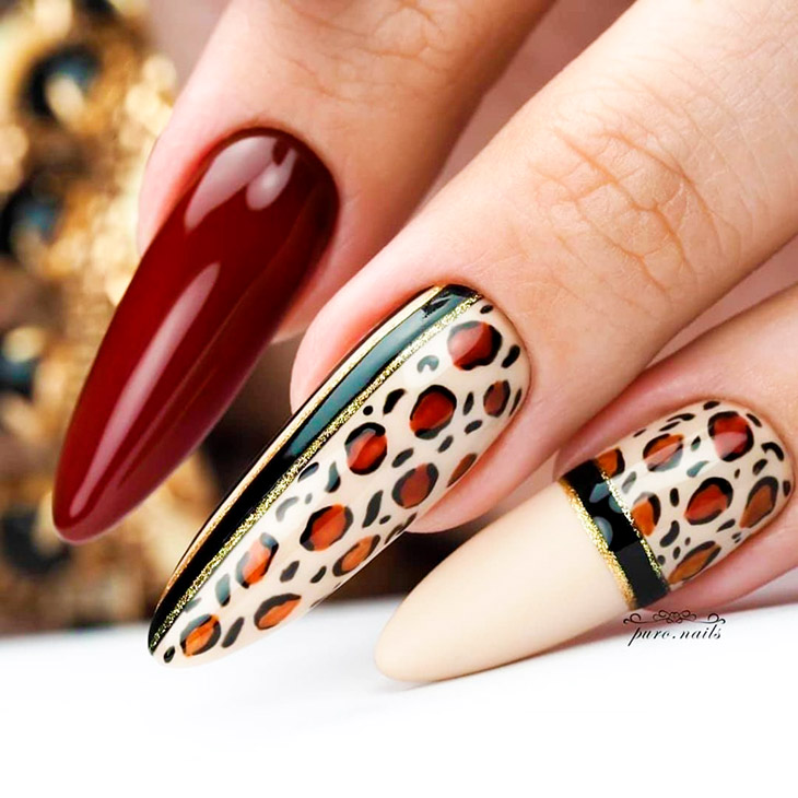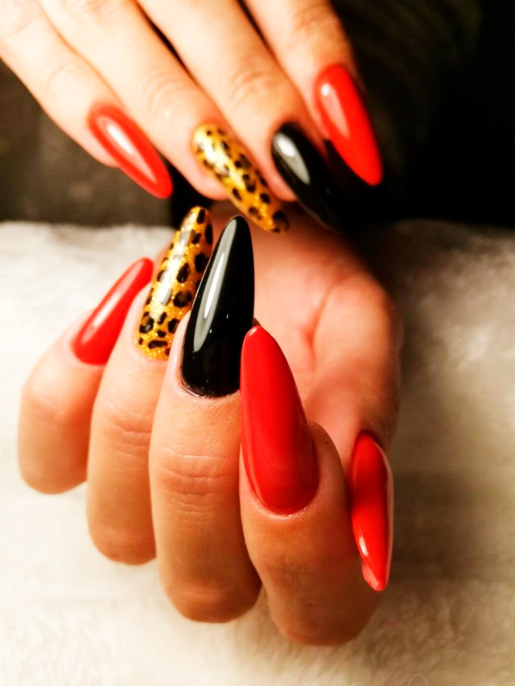 Хищные мотивы делают маникюр красного цвета более дерзким. В этом сезоне данное сочетание будет на пике популярности: