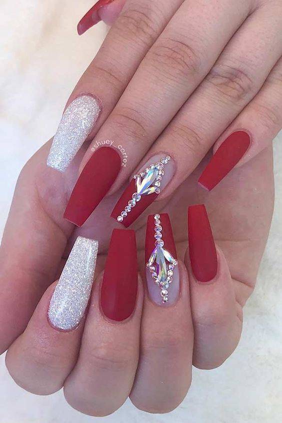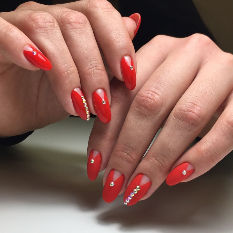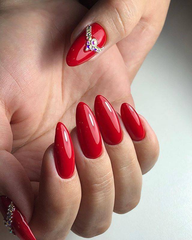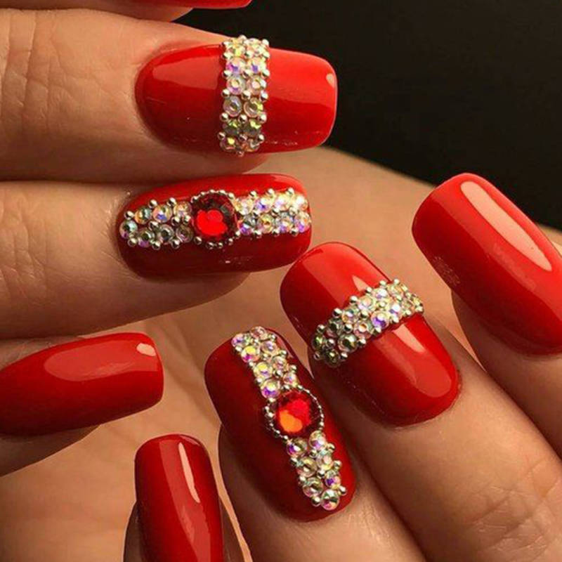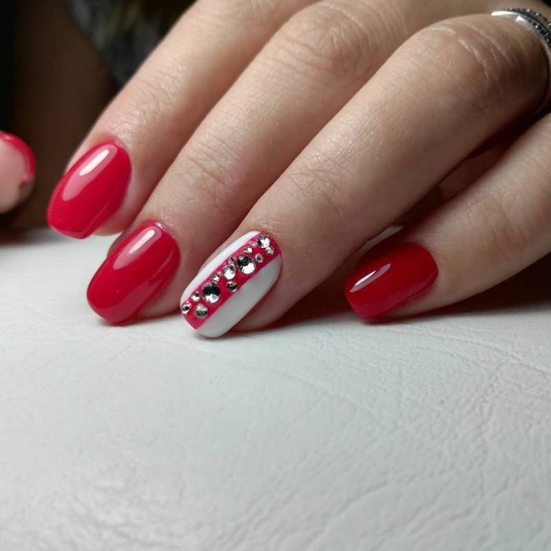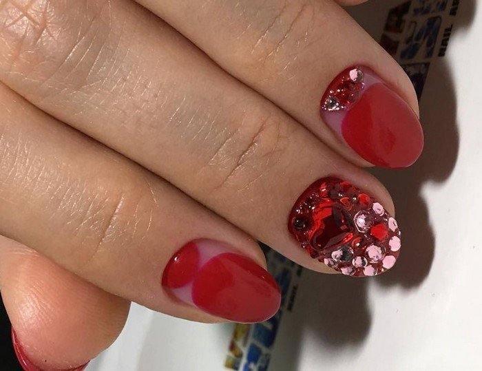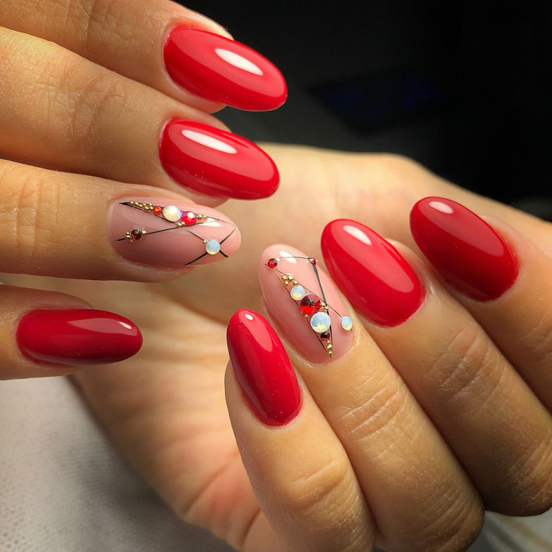 Красный маникюр с камнями — это не только красиво, но и стильно! Такой маникюр подходит к вечерним нарядам, а также к свадебным платьям. А чтобы он выглядел ещё более эффектно, можно использовать в дизайне различные декоративные элементы.