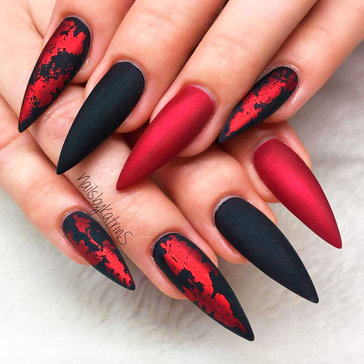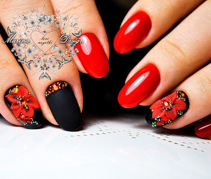 Психологи говорят, что красно-черный маникюр выбирают эмоциональные, творческие личности, уверенные в себе и своем вкусе, целеустремленные и не боящиеся трудностей натуры