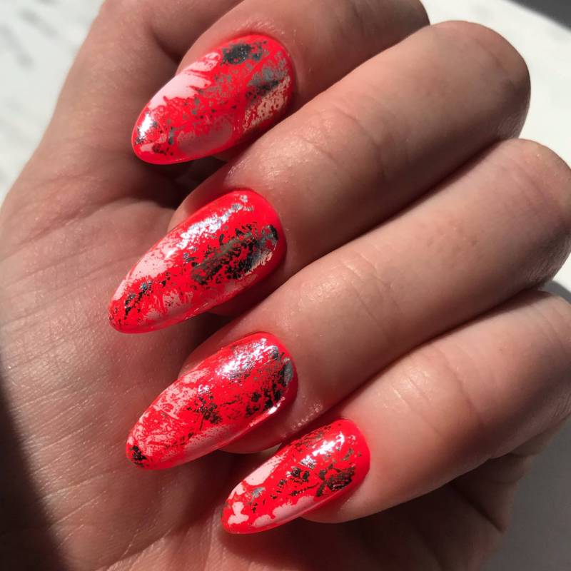 Что же касается дизайна красного маникюра фольгой, он по-прежнему останется в топовом списке, поскольку позволяет создавать индивидуальный дизайн, который лучшим образом подчеркнет не только статус, но также индивидуальность и нетривиальность своей обладательницы.