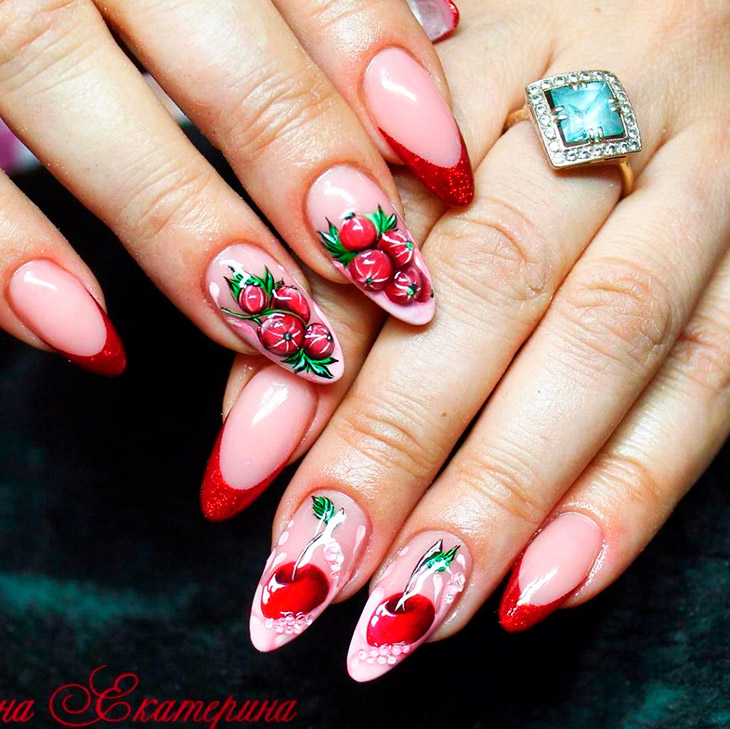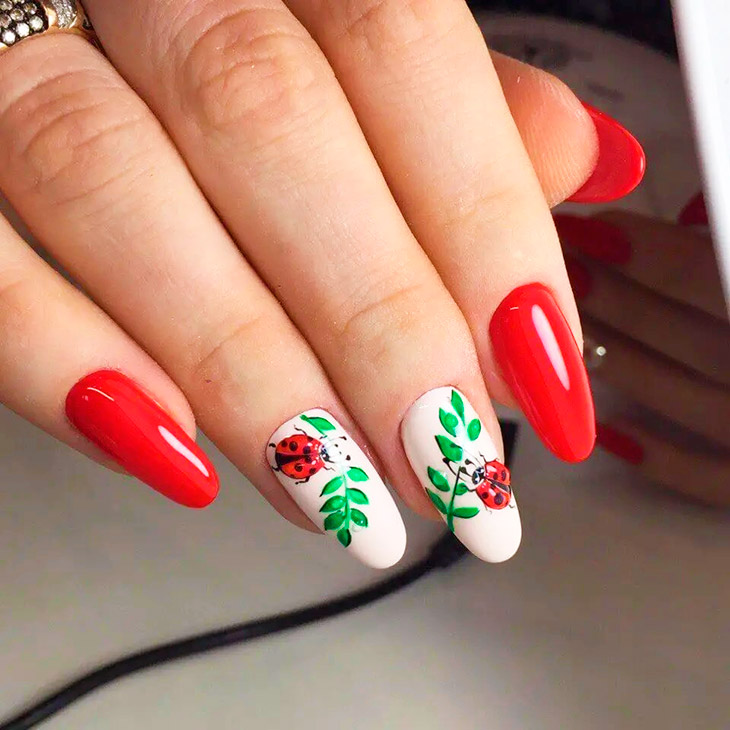 Красные ногти с дополняющим цветом