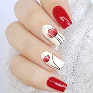 Рисовать золотые сердечки по красному – это по-детски, поэтому дизайн выбирают подростки или малыши. Более взрослые барышни могут позволить себе «сердечные» страсти, но в этом случае лучше к основным красным ноготкам в дизайне добавить акцент на белом, украсив его золотым или алым сердцем.