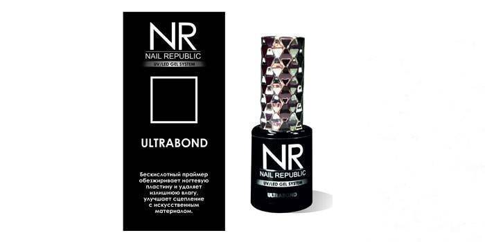 Бескислотный праймер впитывается только в кератиновый ногтевой слой и не нарушает структуру. Ультрабонд содержит минимальное количество метакрилата, имеет специфический запах. Средство обеспечивает прочное соединение с гель-лаком, требует сушки на воздухе от 1 минуты. Цена – 350 руб.