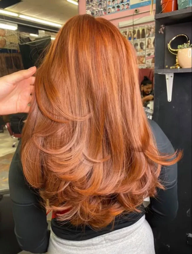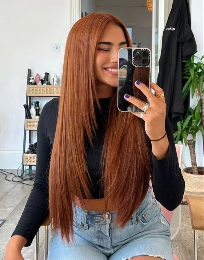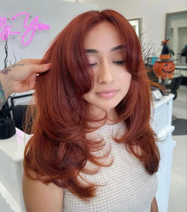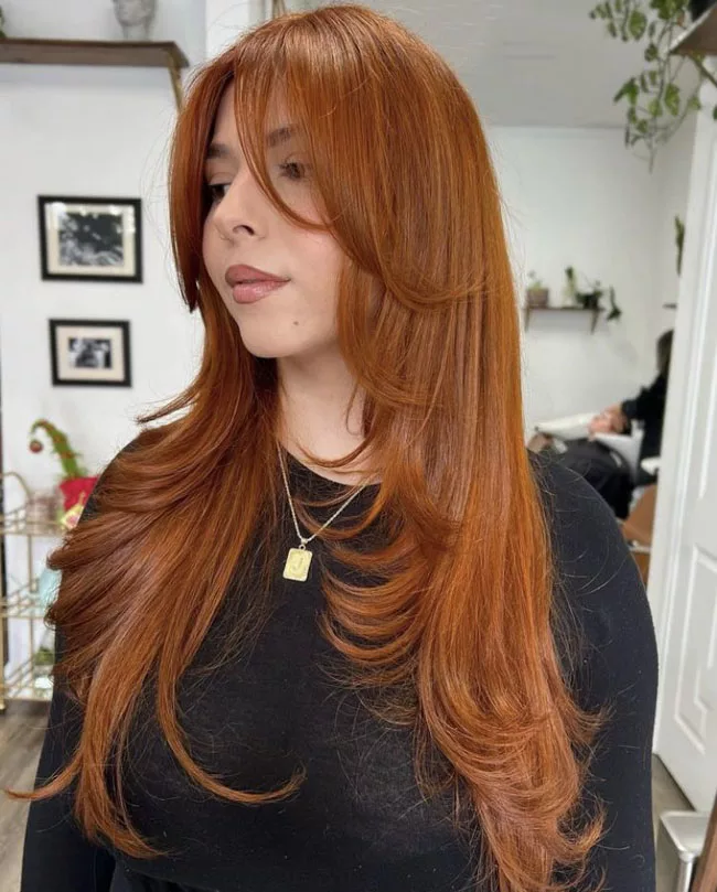 Ни один цвет не привлекает столько внимания как рыжий. С такой яркой базой лучше всего смотрятся максимально естественные формы. Легкий волнистый градиент с пробором посередине. Можно воспользоваться модой на возвращение 90-х, чтобы повторить прическу Джулии Робертс из фильма «Красотка». Эта объемная рыжая копна ассоциируется с женщинами с характером.