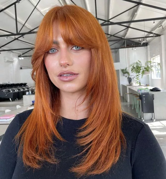 Короткая челка — один из фаворитов 2024 года и один из лучших вариантов для преображения длинных и прямых волос. Она обладает смелым и очень оригинальным штрихом. Отличный способ придать вашему образу изюминку с помощью тонкого и утонченного штриха. Ее можно сделать прямой, градуированной или рваной, в этом случае выполняется филировка.