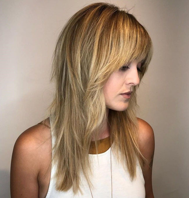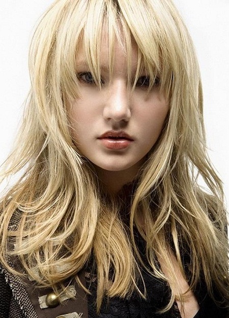 Этот вариант прически основан на том, что на голове создаются пряди разной длины. Чем длиннее волосы, тем слоистее получится укладка. Длинноволосые дамы, которые хотят видеть косую челку, должны внимательно присмотреться к каскаду. Это связано с тем, что он прекрасно сочетается с нервной рваной челкой. Тогда можно будет выгодно обрамлять лицо, а имеющиеся пряди у лица будут сильно выбиваться. Достигается такой результат за счет плавного перехода челки в основную капну волос.