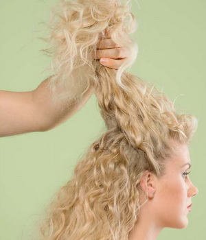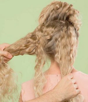 - Концы волос на затылке завейте, разделяя шевелюру на мелкие пряди.